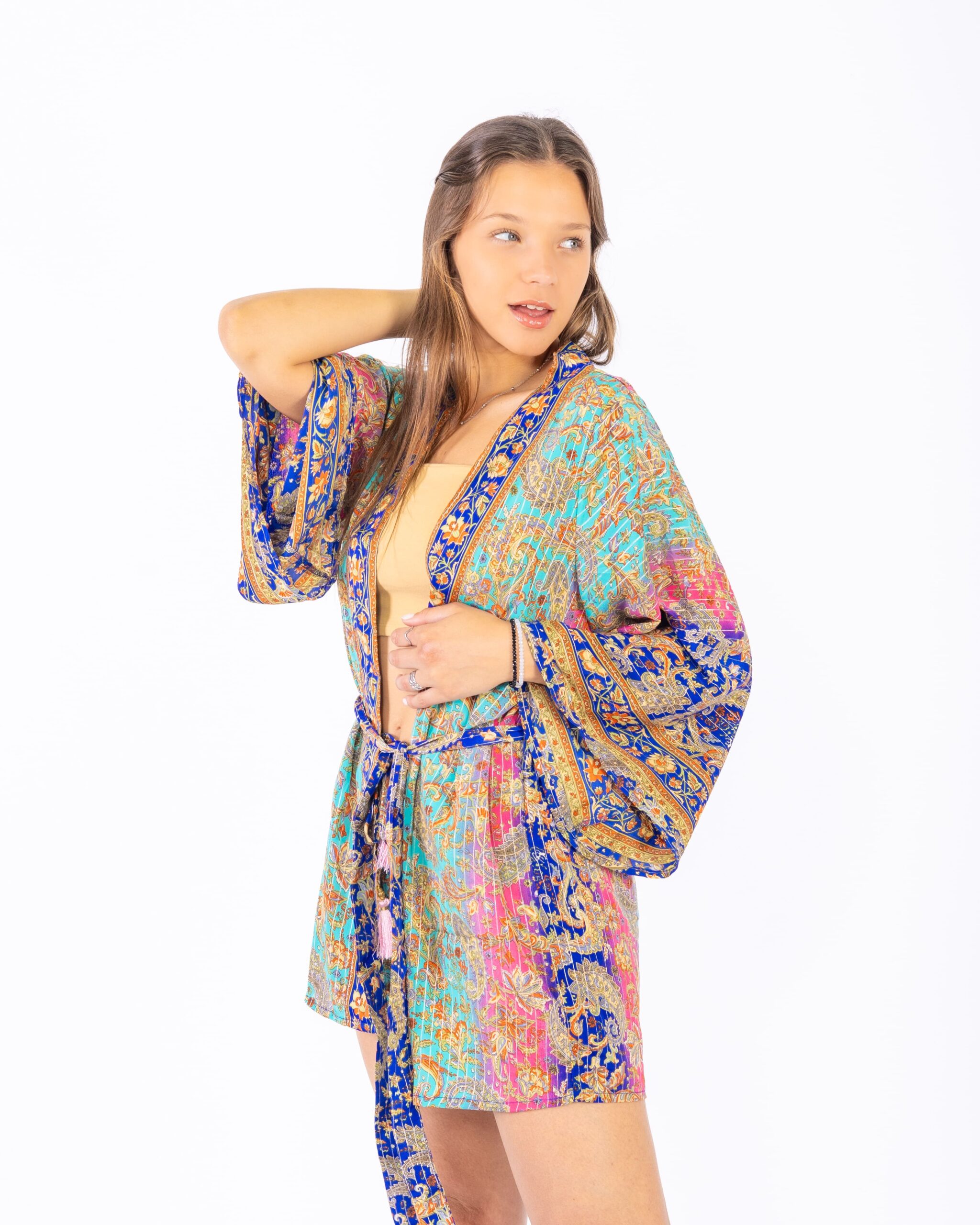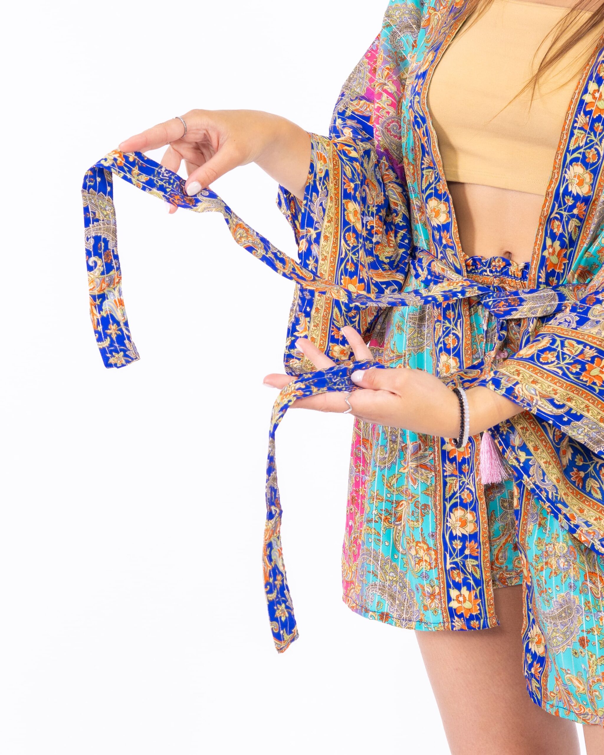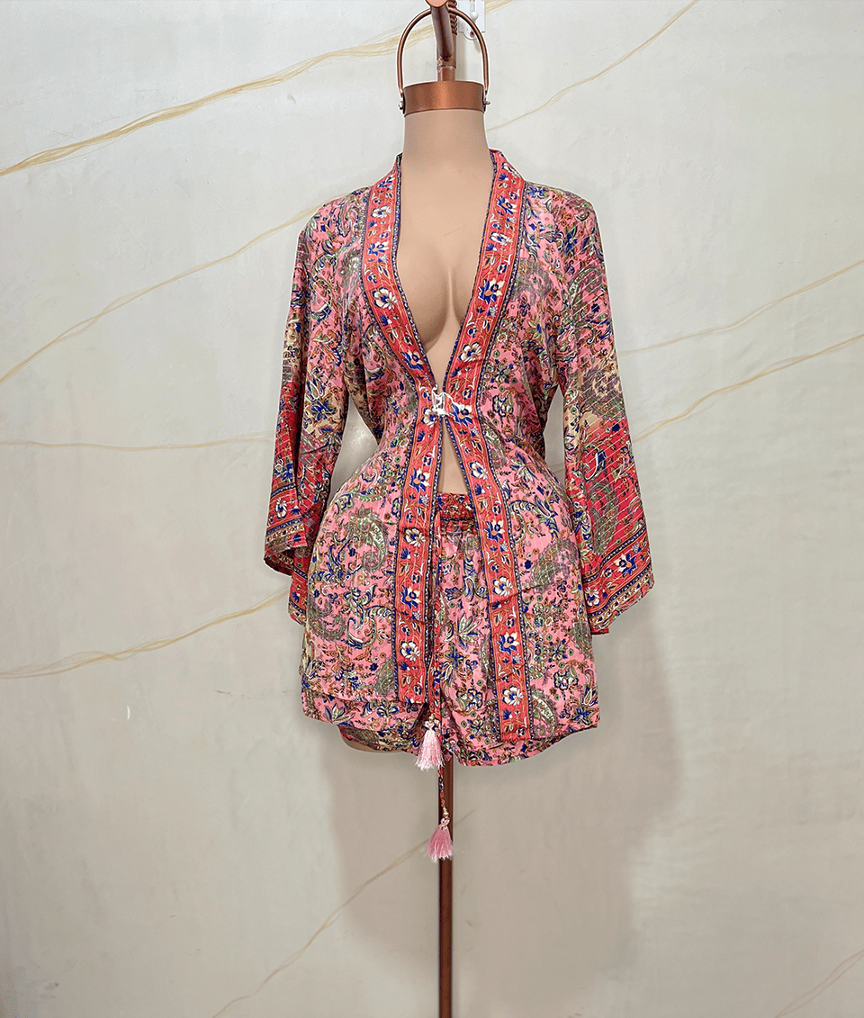 conjunto de kimono y short de seda artificial