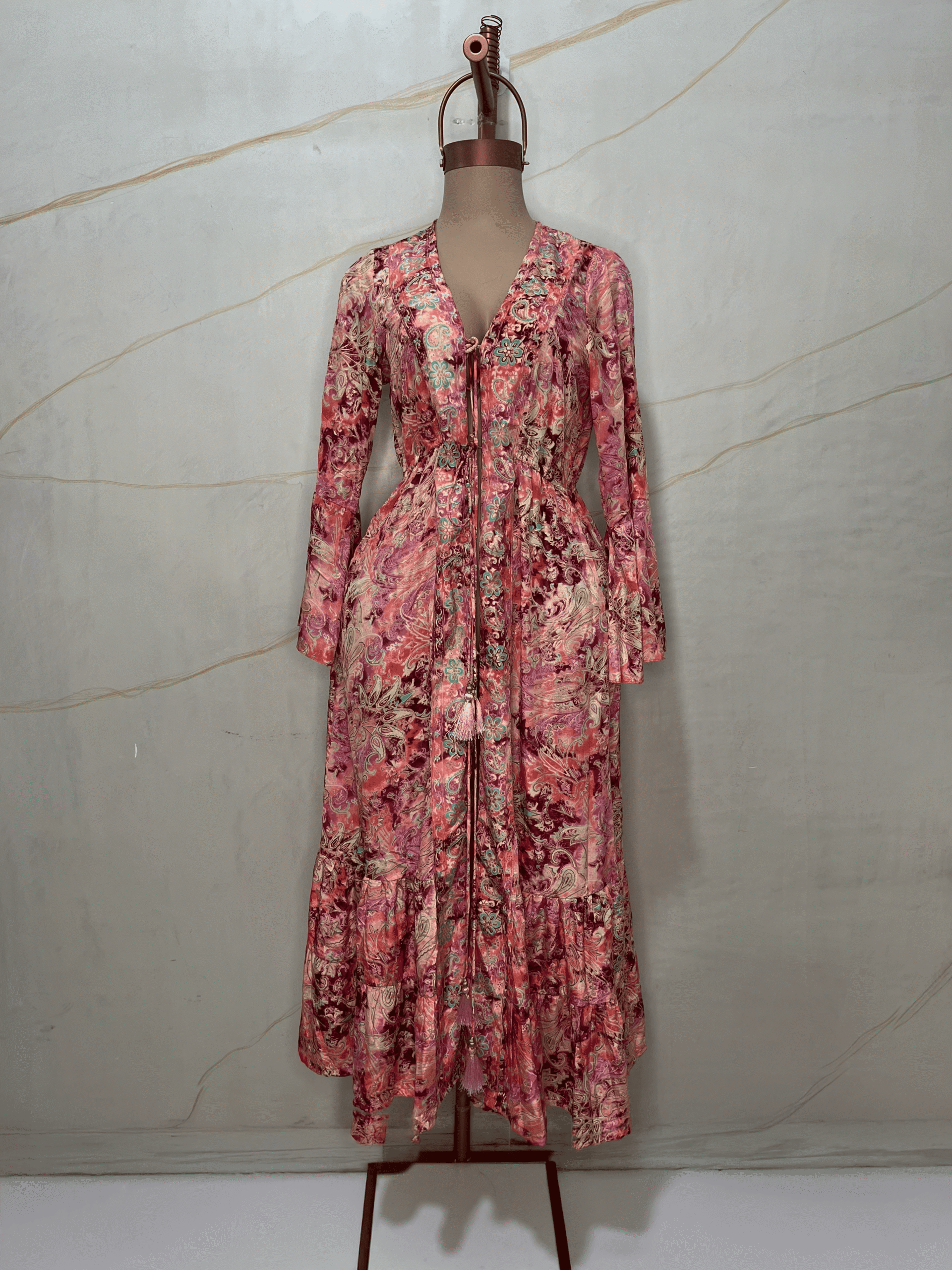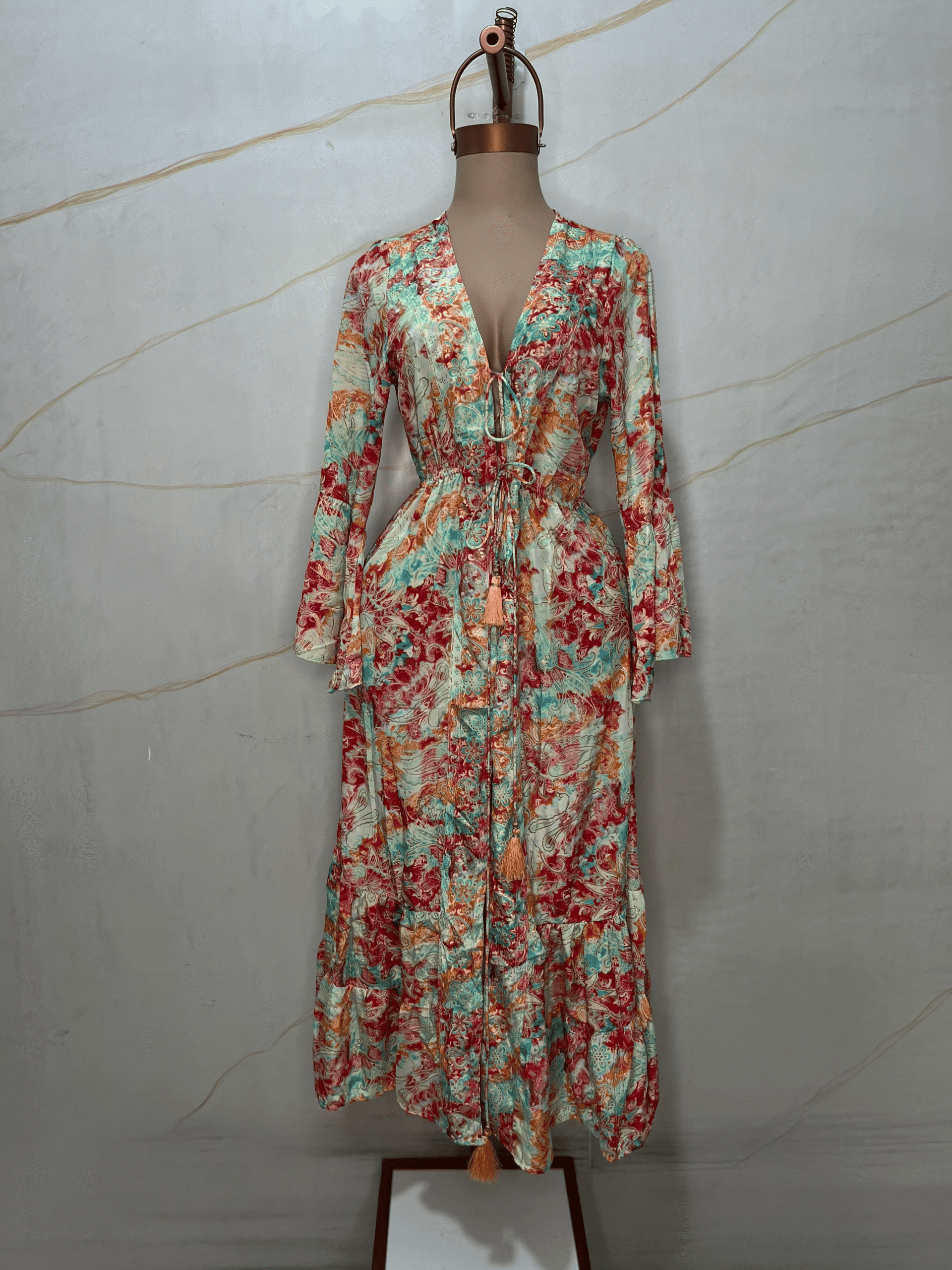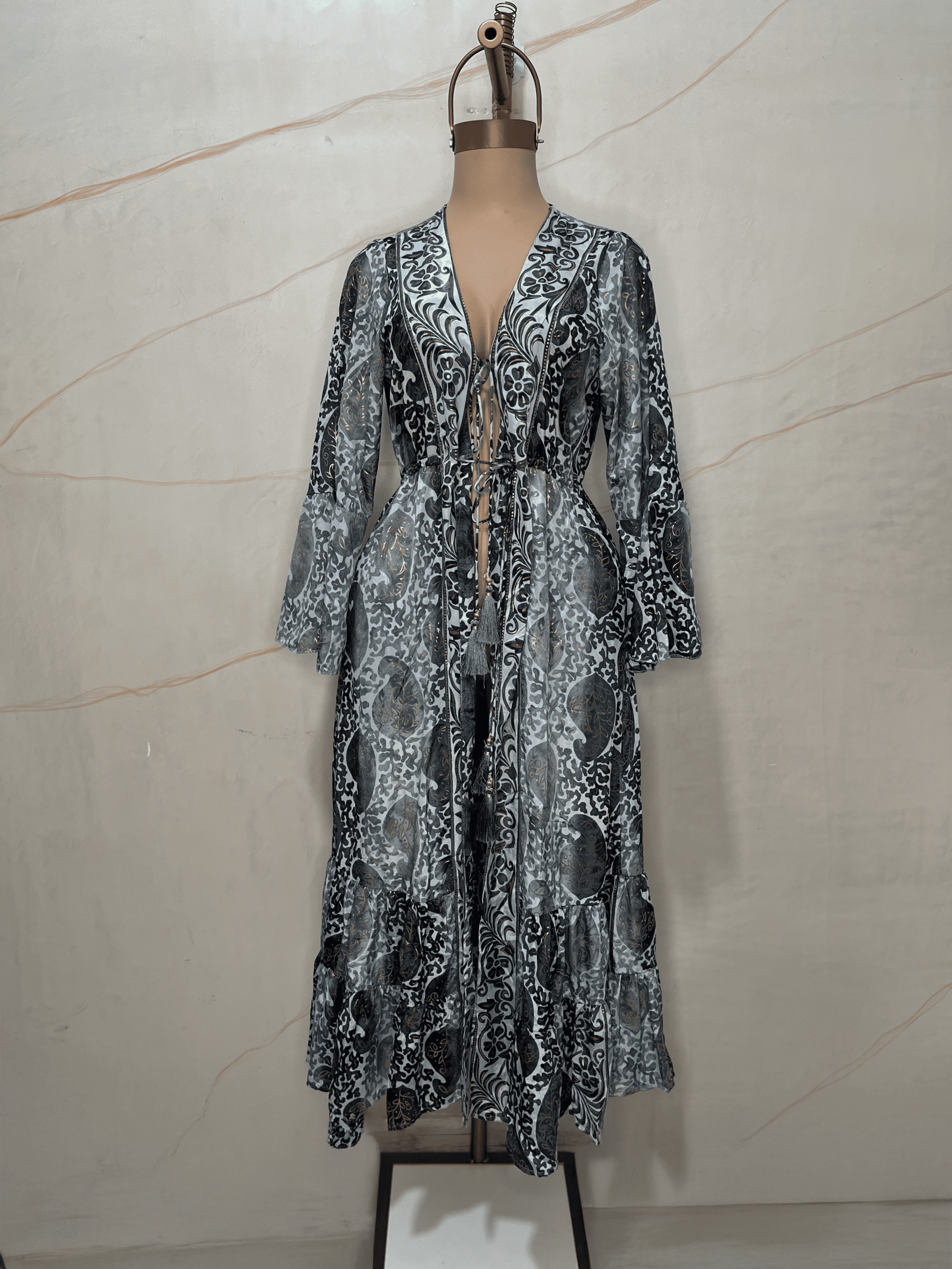 Kimono de seda artificial,cuenta con dos lazos delanteras para poder anudarlo ,con mangas acampanadas (consultar estampas disponibles)