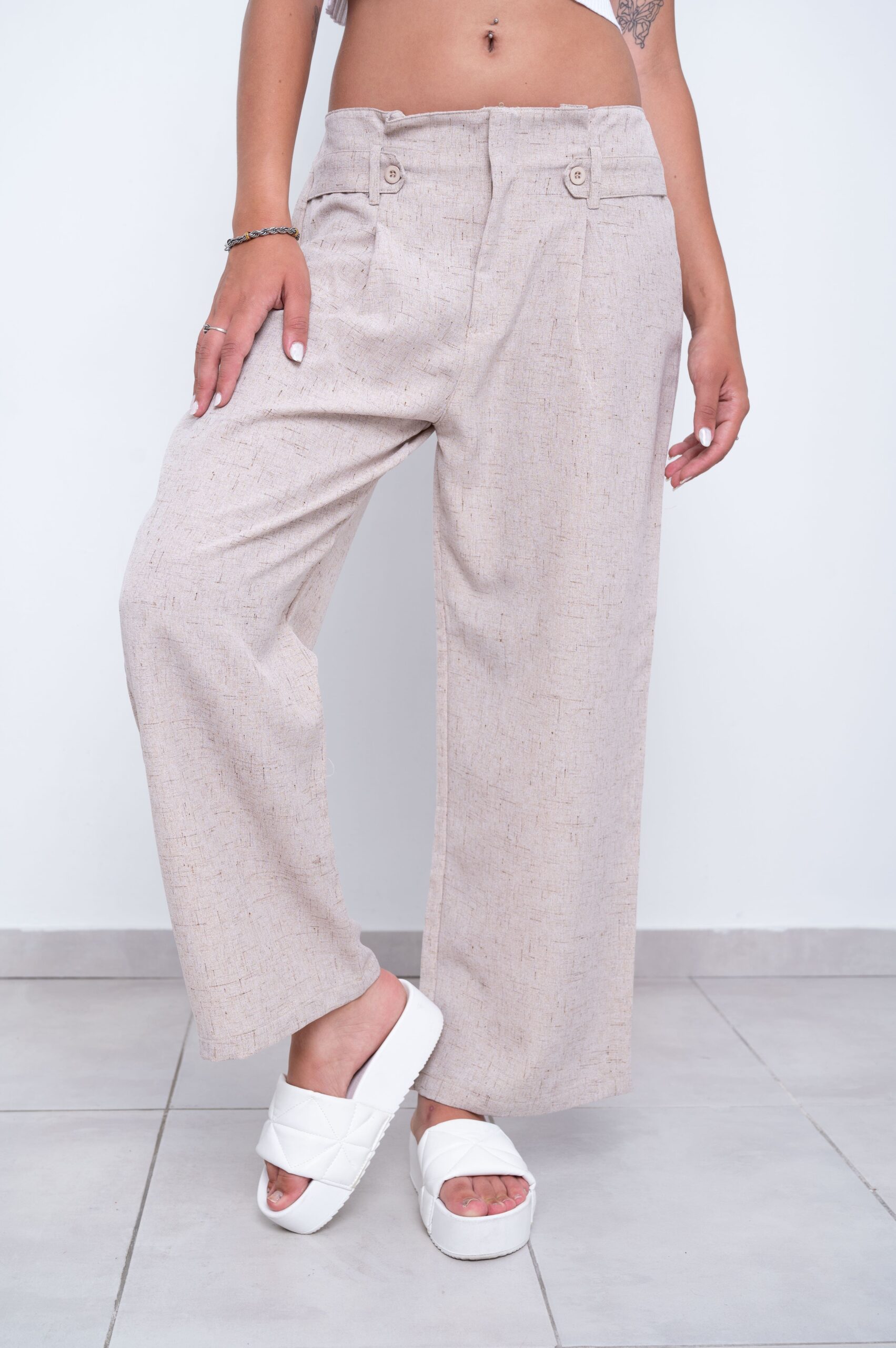De lino sastrero. Recto con pinza tabla delantera y decoracion lateral en cintura