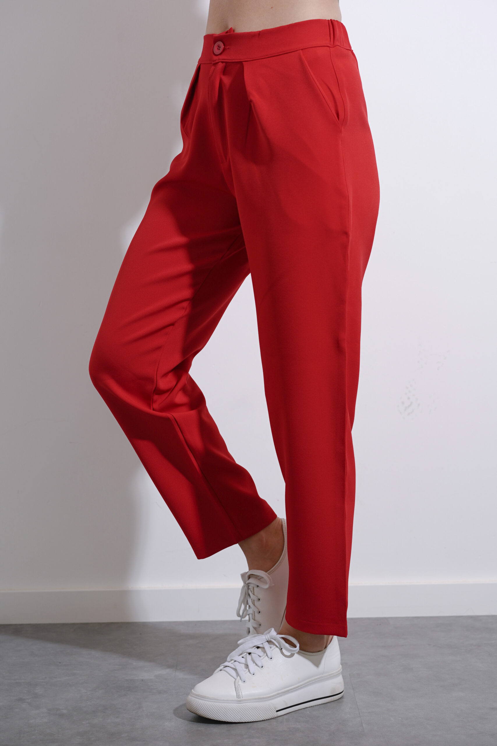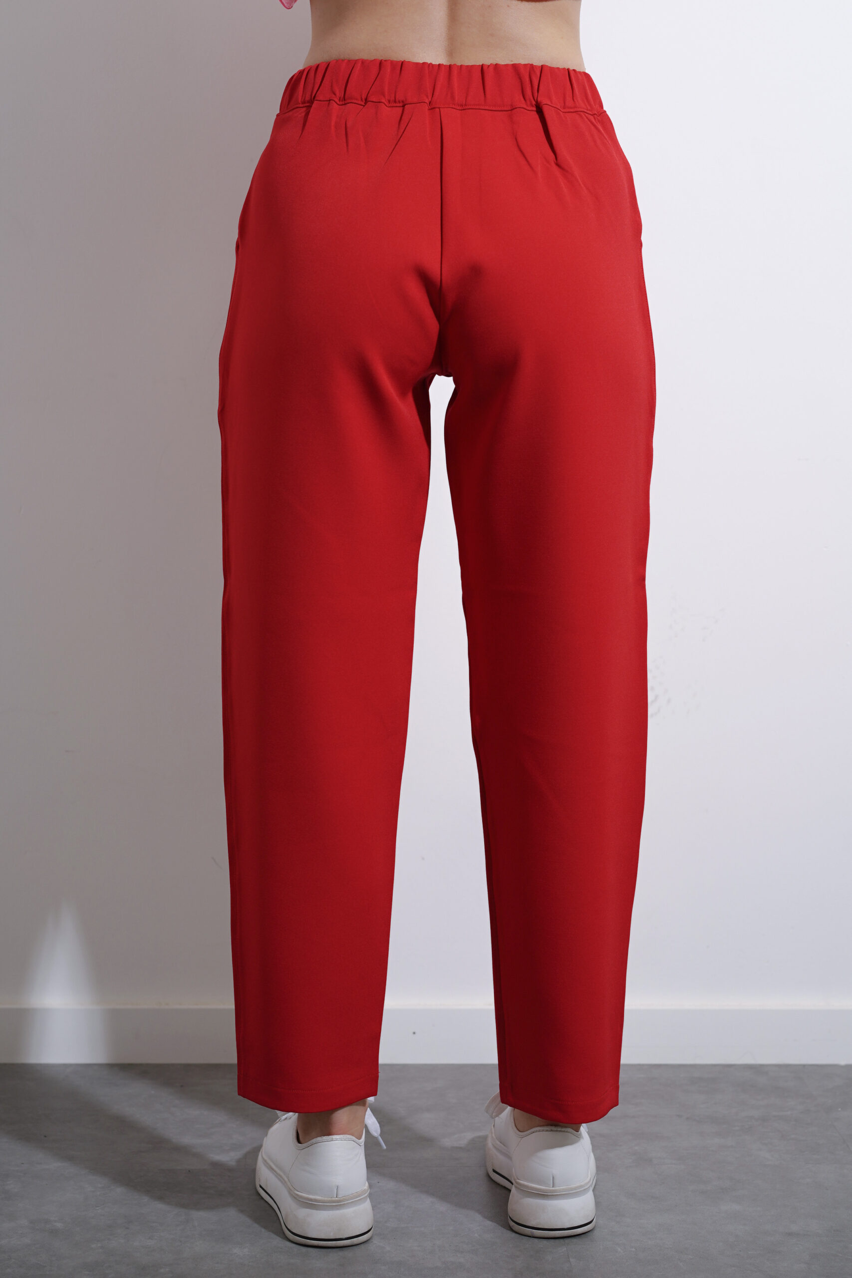 Pantalón de crepe sastrero con pinza delantera, bolsillos y elástico en espalda.
