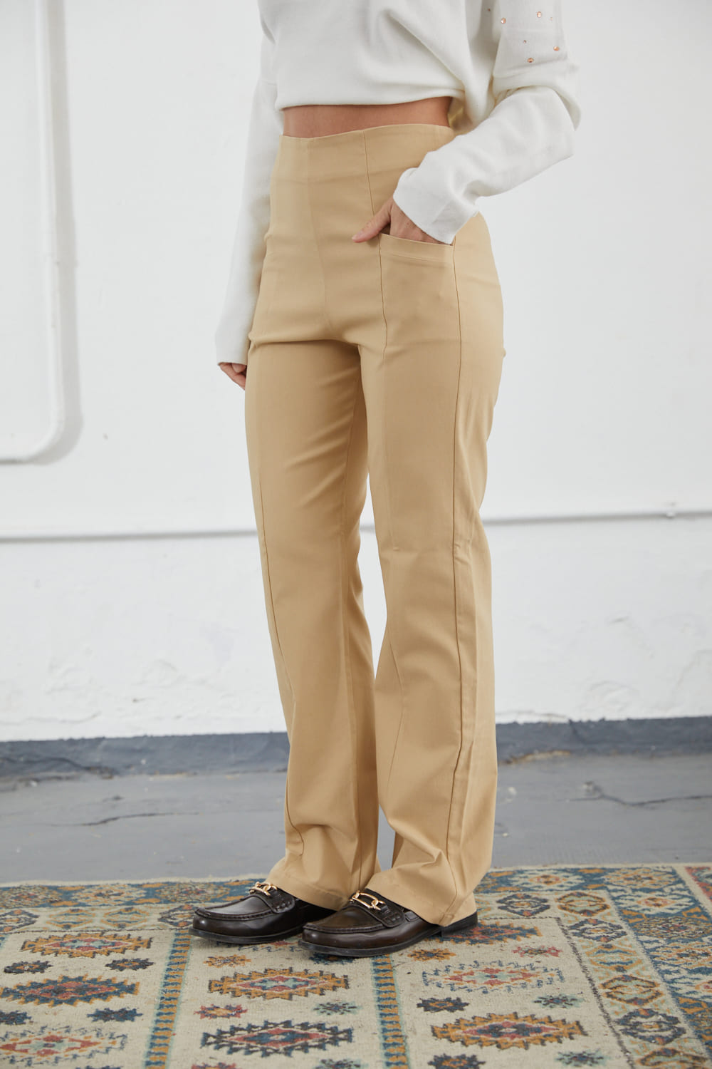 De bengalina elastizada, con bolsillos frontales y detalles