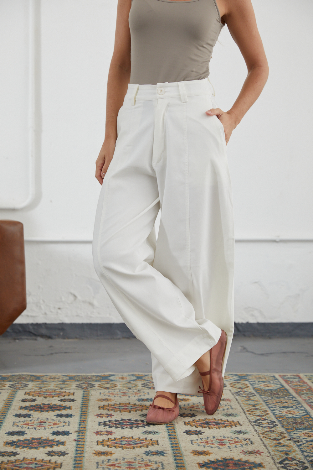 Pantalon de bengalina tiro alto con bolsillos corte chino en su parte trasera ,corte baggie