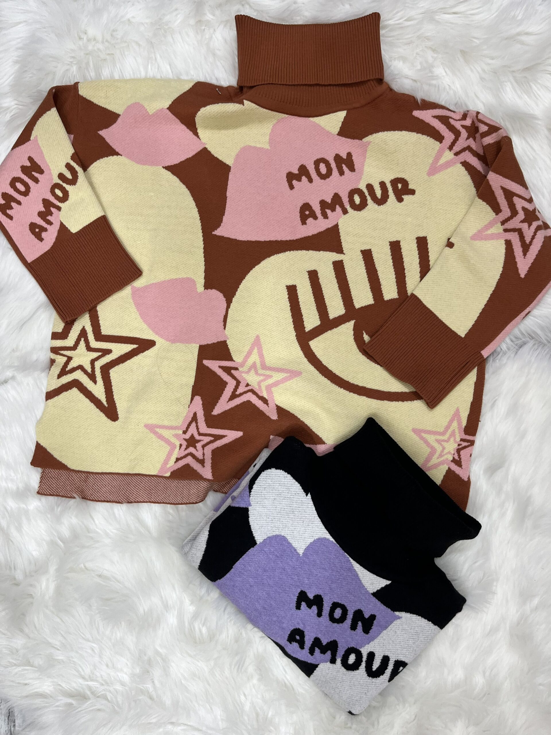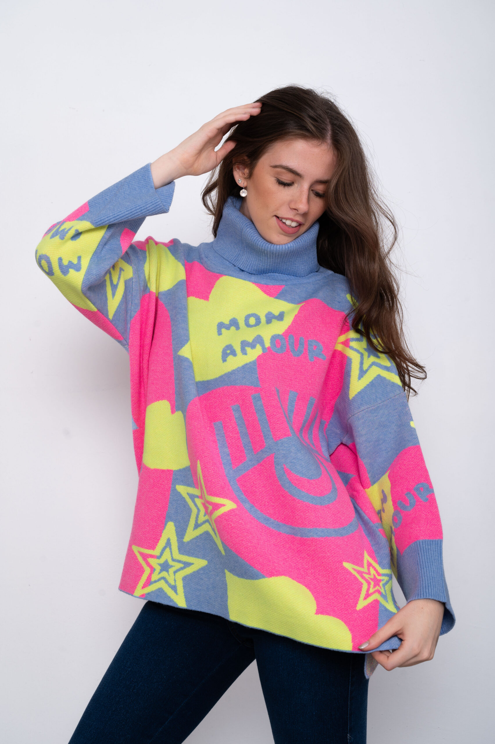 De bremer doble hilo, con tajos a los costados, amplio y con estampado de amour, oversize.