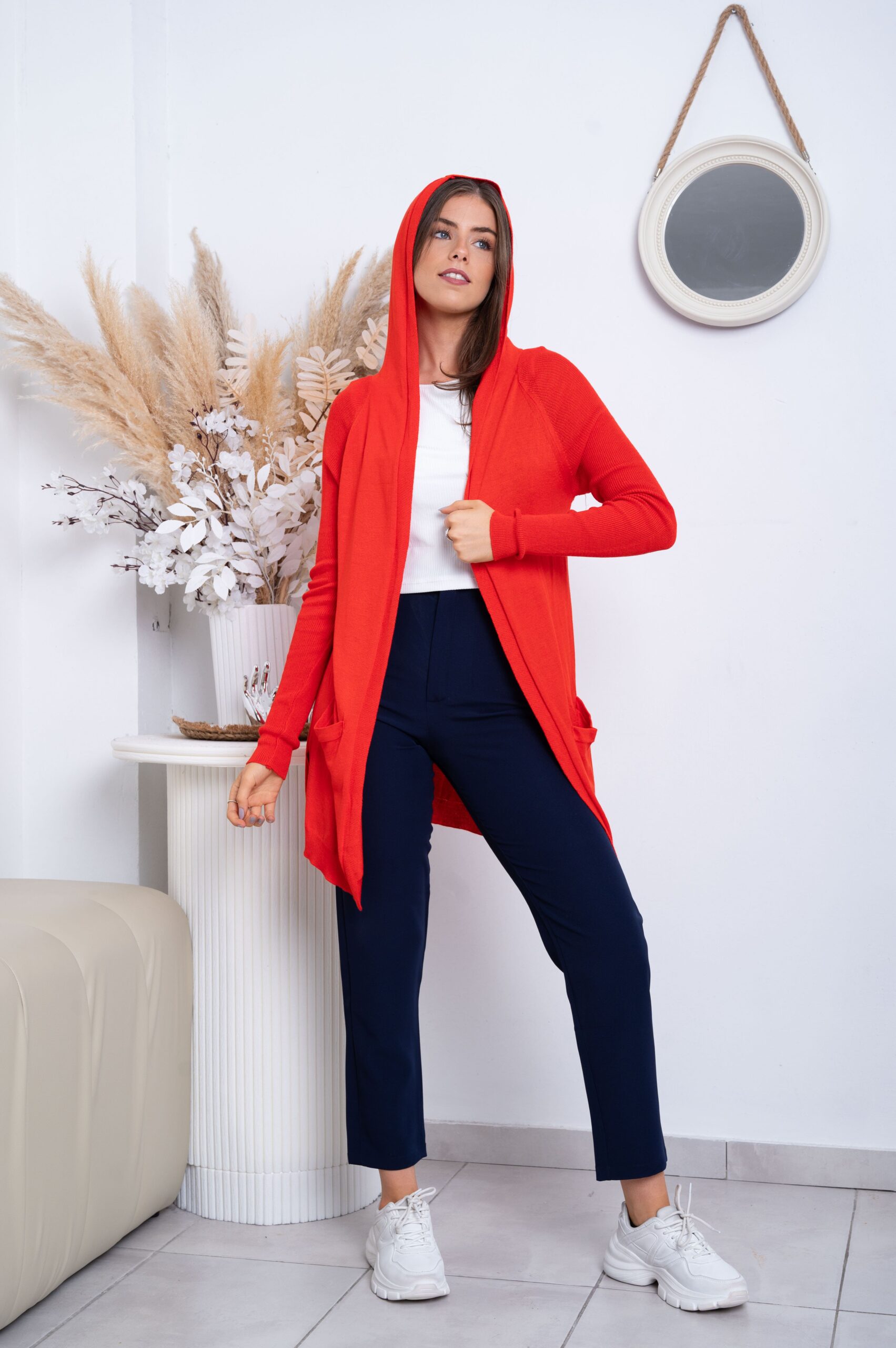 Saco de Lycra. Con bolsillos y capucha, con mangas adherentes estilo morley.