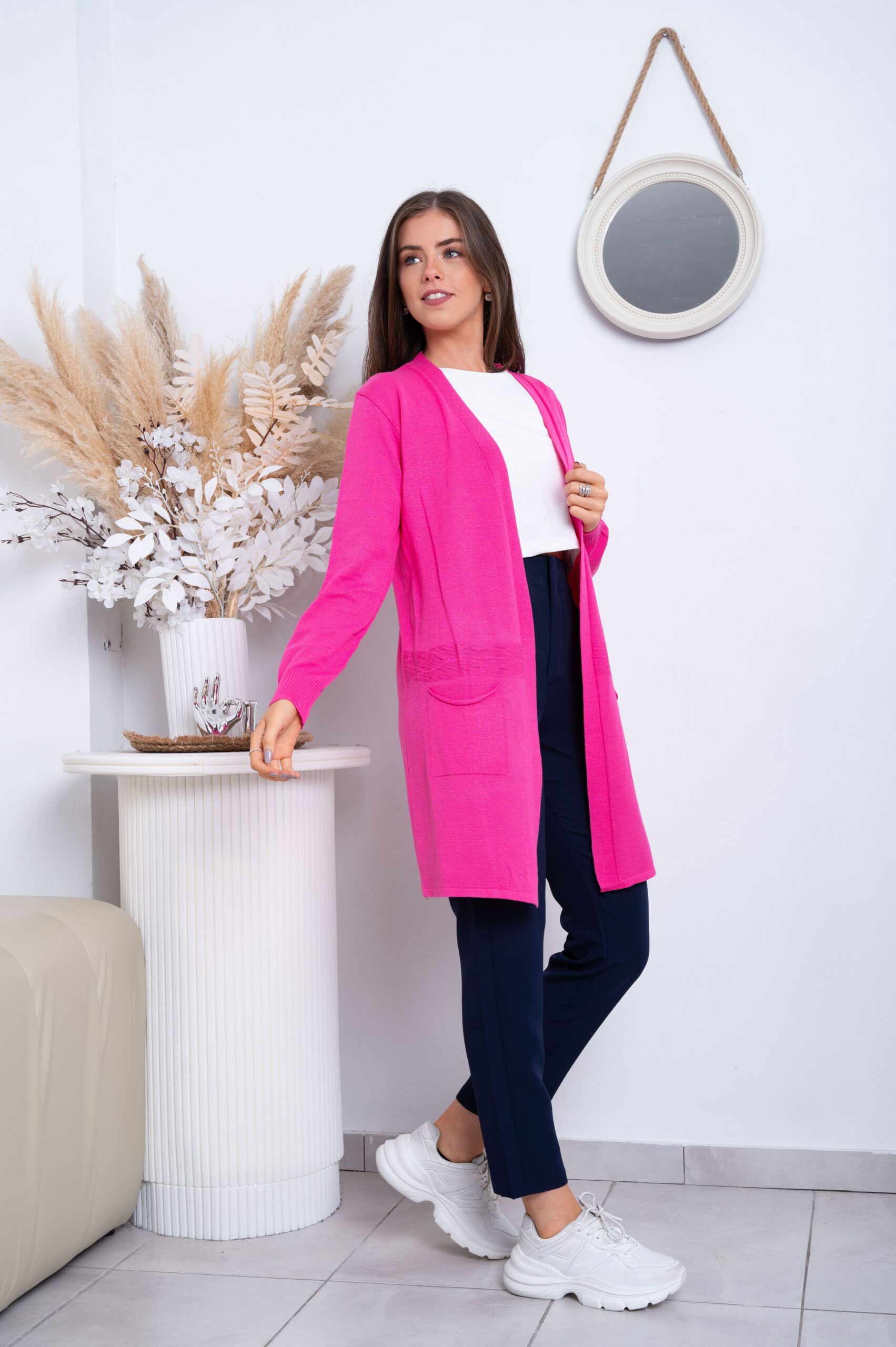 Saco de lycra. Con puño ajustado, bolsillos y detalle de diseño en relieve en cintura