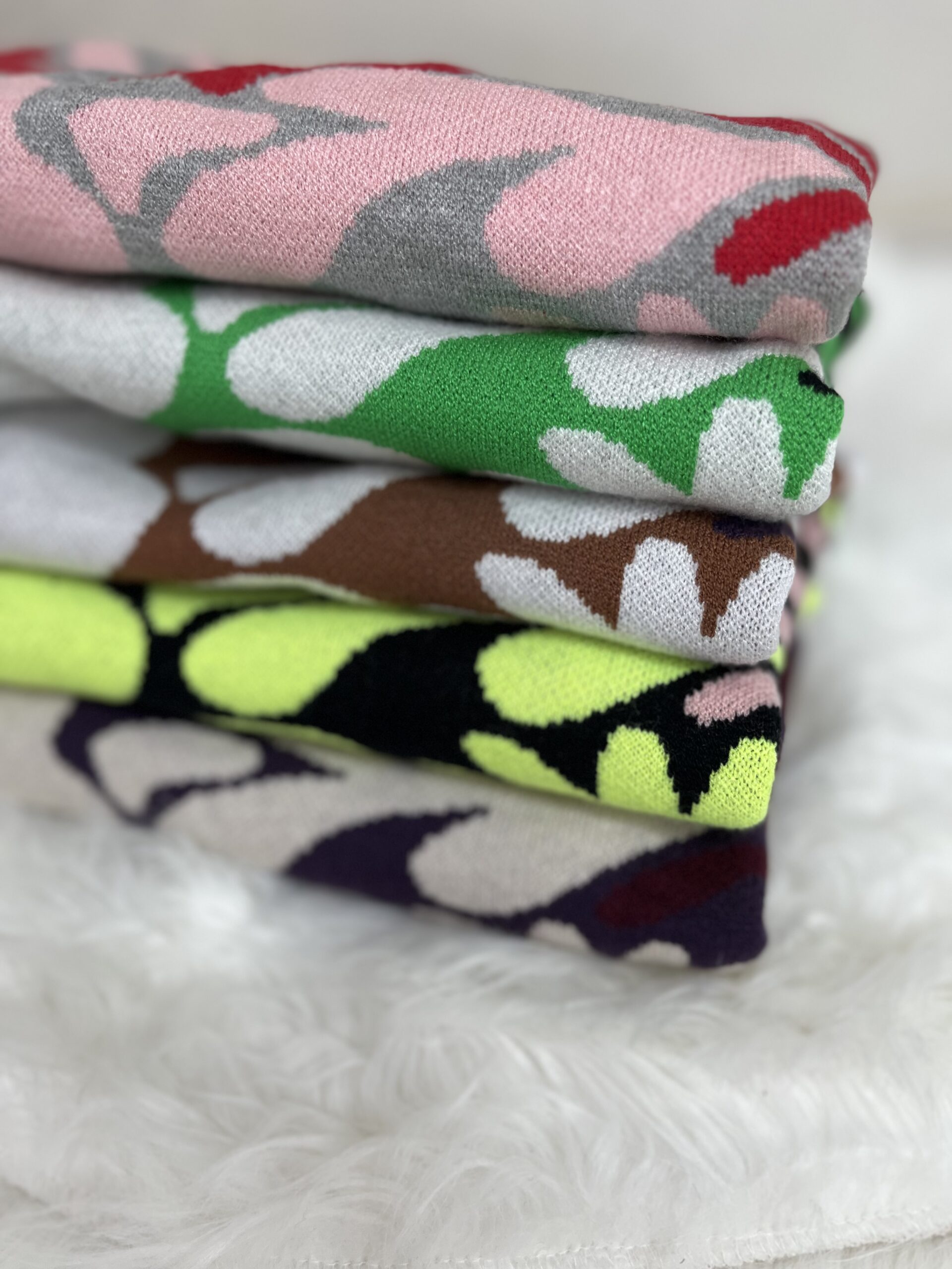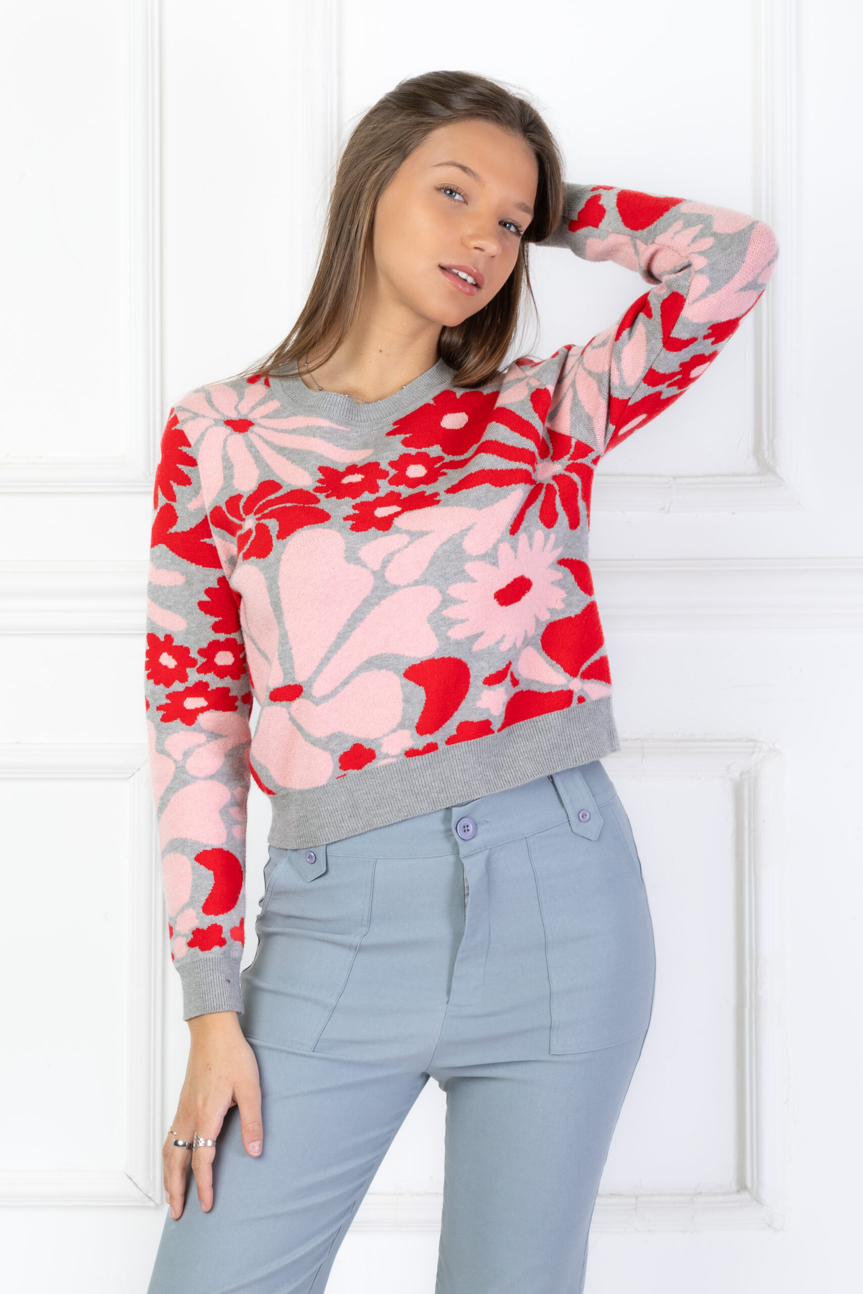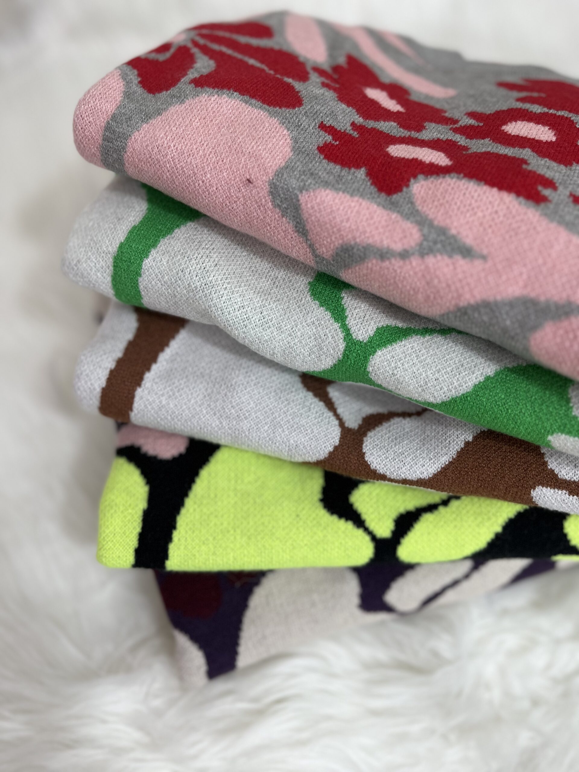 Sweater de bremer de doble hilo con diseño de flores abstracto,corte boxyfit abarca hasta un xl